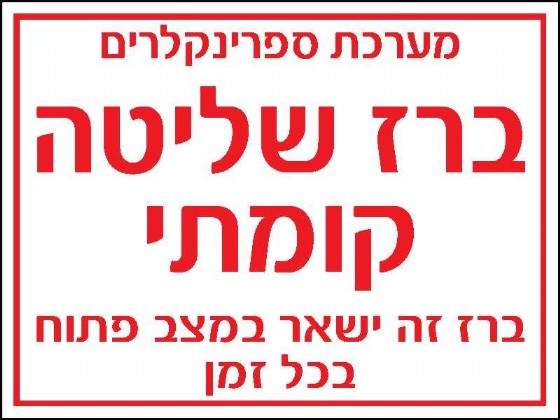 שלט PVC איכותי בעובי 2 מ"מ ברז שליטה קומתי במידה 20 × 15 ס"מ. ניתן להזמין את כל סוגי השלטים בייצור אישי כולל מידות וסוגי חומרים.