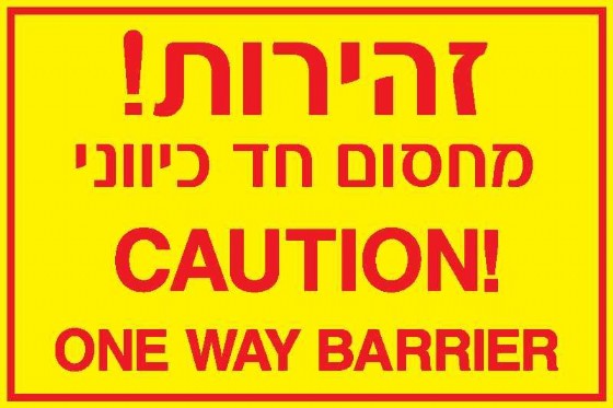 שלט PVC איכותי בעובי 2 מ"מ זהירות מחסום חד כיווני במידה 60 × 40 ס"מ. ניתן להזמין את כל סוגי השלטים בייצור אישי כולל מידות וסוגי חומרים.