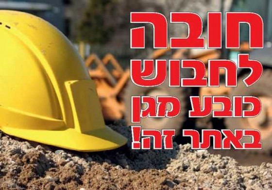 שלט PVC איכותי בעובי 2 מ"מ חובה לחבוש כובע מגן באתר זה במידה 50 × 35 ס"מ. ניתן להזמין את כל סוגי השלטים בייצור אישי כולל מידות וסוגי חומרים.