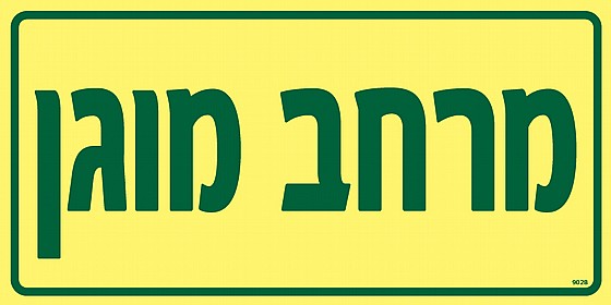 שלט PVC איכותי בעובי 2 מ"מ פולט אור מרחב מוגן במידה 30 × 15 ס"מ. ניתן להזמין את כל סוגי השלטים בייצור אישי כולל מידות וסוגי חומרים.
