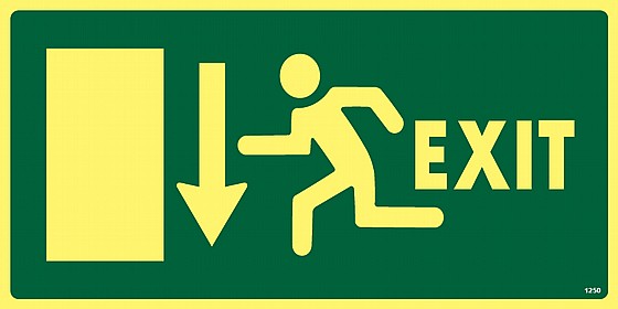 שלט PVC איכותי בעובי 2 מ"מ פולט אור יציאה EXIT למטה במידה 30 × 15 ס"מ. ניתן להזמין את כל סוגי השלטים בייצור אישי כולל מידות וסוגי חומרים.