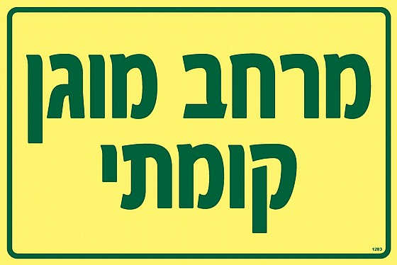שלט PVC איכותי בעובי 2 מ"מ פולט אור מרחב מוגן קומתי במידה 30 × 20 ס"מ. ניתן להזמין את כל סוגי השלטים בייצור אישי כולל מידות וסוגי חומרים.