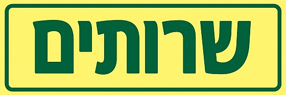 שלט PVC איכותי בעובי 2 מ"מ פולט אור שרותים במידה 10 × 30 ס"מ. ניתן להזמין את כל סוגי השלטים בייצור אישי כולל מידות וסוגי חומרים.