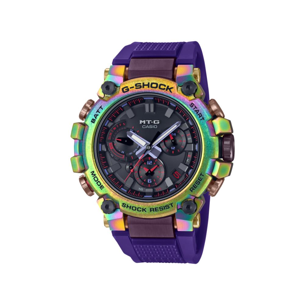 MTGB3000PRB-1A מתכת פוגשת סיליקון בשעון MT-G עם מרקם וצבעוניות מיוחדים מאוד, בהשראת זוהר הקוטב הצפוני.