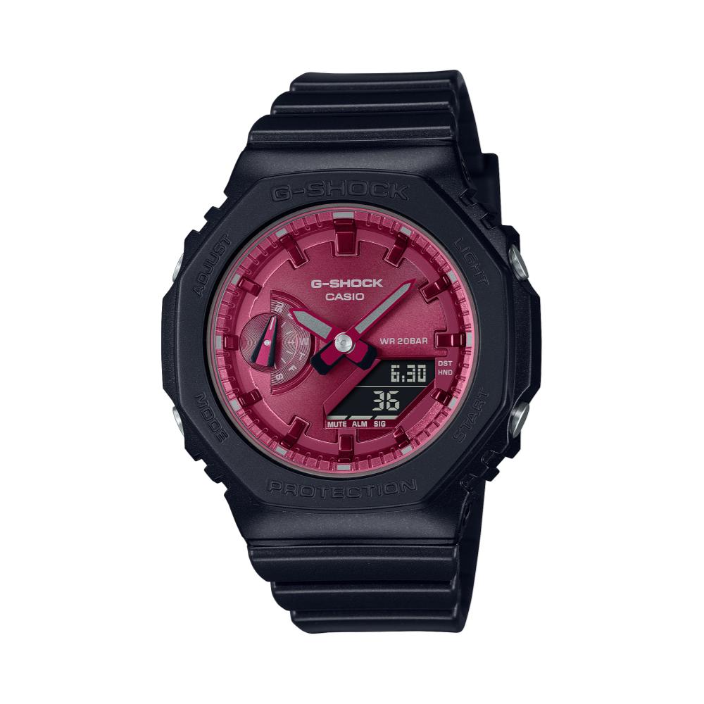 GMA-S2100RB-1ADR שעון יד ג'י-שוק קארבון יוניסקס, אנלוגי-דיגיטלי, בעיצוב נקי. מגיע עם גוף בצבע שחור וחוגה בצבע בורדו עמוק.