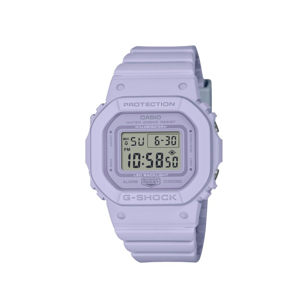 GMD-S5600BA-6D שעון יד G-SHOCK דיגיטלי, חדש בסדרת האופנה לנשים של ג'י-שוק. עיצוב רטרו מרובע ומתכתי המבוסס על הסדרה הפופולרית – 5600. מדובר בעיצוב קטן ועדין יותר מהסדרה המקורית, צבעי פסטל וגימור אלגנטי המתאים לנשים וגברים כאחד.  עמיד למים בשחיה וספורט ימי (לא לצלילת מיכלים) ומגיע עם רצועה רכה נוחה.