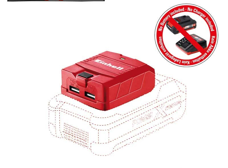 מטען נייד USB מקורי המתאים לכל כלי העבודה 18V של EINHELL. תוצרת EINHELL גרמניה.