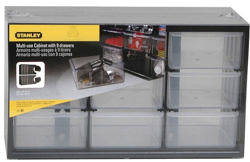 אירגונית תאים בתצורת 9 מגירות רחבות ונשלפות. המבנה כולל מגירות שוות בגודלן. כל מגירה בעלת חלל אחסון ללא חלוקה פנימית. תאים בעלי שקיפות לנגישות ותצוגה ברורה למשתמש. מותאם לשימוש חוץ ופנים למשתמש המקצועי או הביתי.