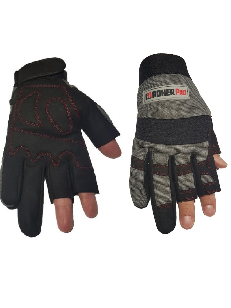 זוג כפפות עבודה למכונאים 3 אצבעות חתוכות מידה XL ROHER-PRO