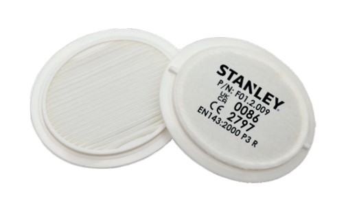 זוג מסנני P3 – מתאים למסכות חצי פנים STANLEY, מספק הגנה מקסימלית מפני אבק, רסס ואדים רעילים.