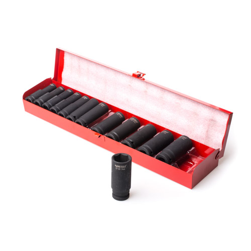סט בוקסות אימפקט עמוקות דרייב “1/2, 13 חלקים 10–24 מ”מ – אידיאלי לעבודה עם כלי אימפקט והגעה נוחה לברגים עמוקים וקשים לגישה.