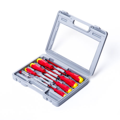 סט 7 מברגים מבודדים (פיליפס + שטוח) 1000V+ טסטר במזוודת פלסטיק